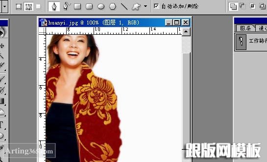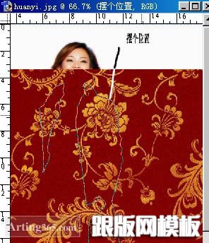 5、置换后图案有了一些扭曲,和衣服原来的扭曲方向有了一致,而且还有一些明暗关系,可能因为象素不够的关系看不出来,在建立选区的时候可以模糊1--2个象素,反选删除不用的部分!