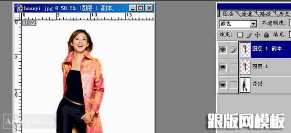 6、将它复制成两份,图层1的图层样式为叠加,图层1副本的图层样式为颜色,效果如下图: