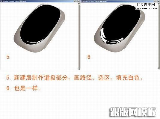 5、新建一个图层,制作键盘部分,用钢笔勾出路径,转为选区填充白色如下图5所示。