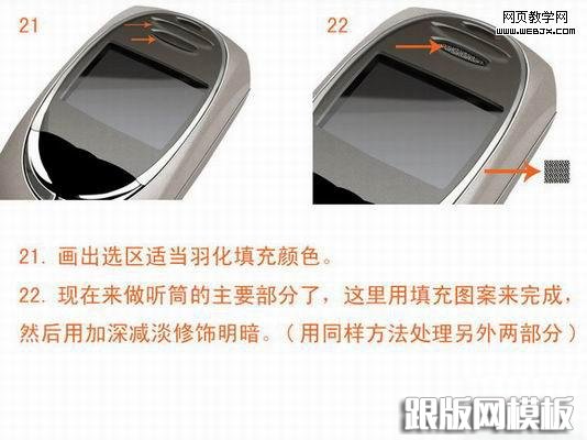 22、现在来做听筒主要部分,这里用填充图案来完成,然后用加深,减淡工具修饰明暗(同样的方法处理另两个部分)。
