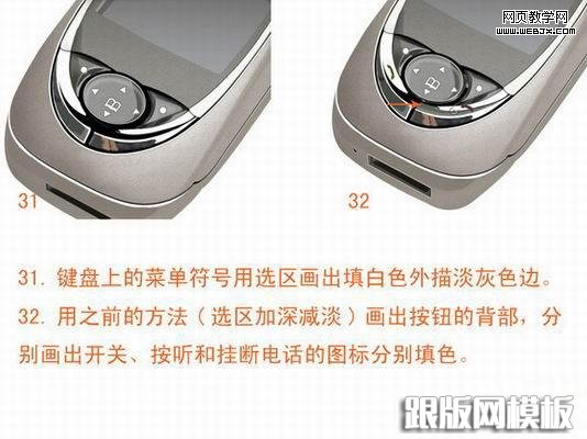 鼠绘之前,我们需要多了解一下手机的简单的构造。这样鼠绘的时候就好分步画出各个部分。虽然比较繁琐,不过大致的制作方法都基本相同。先用钢笔勾出选区,填色后用加深,减淡工具涂出明暗即可。