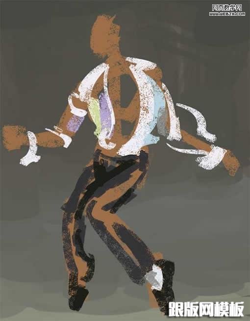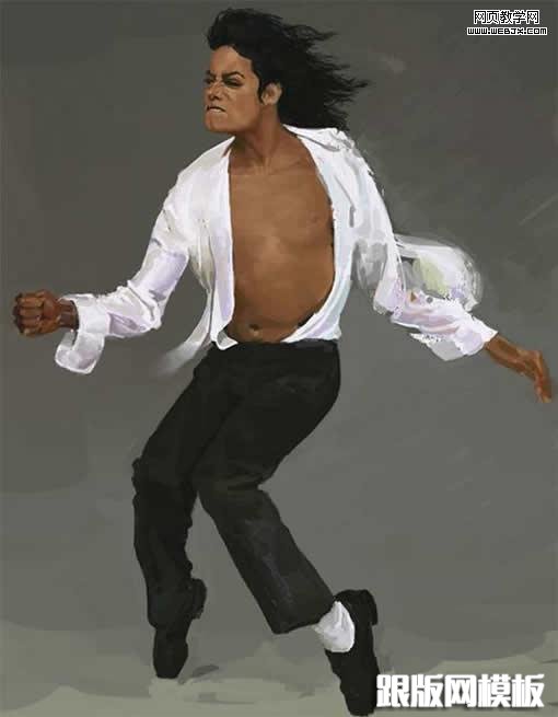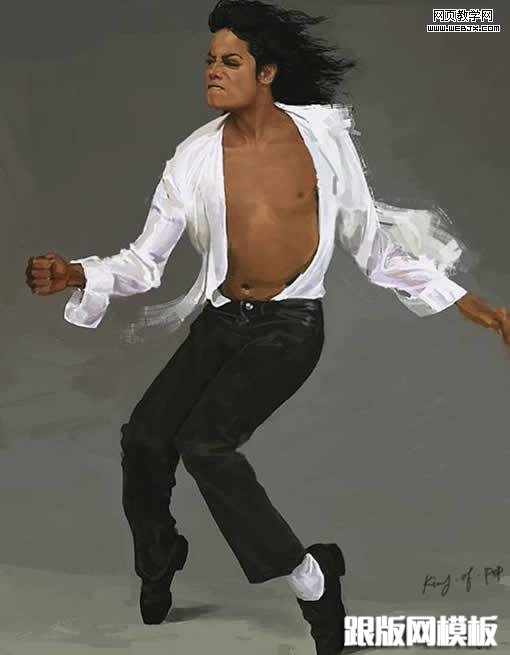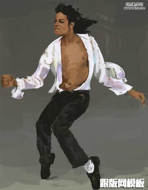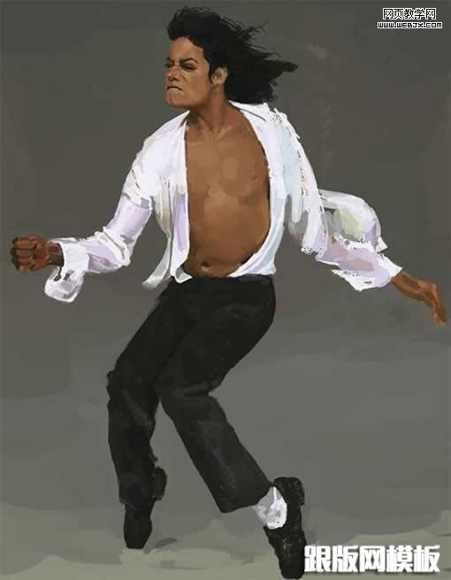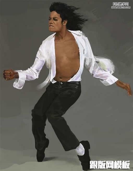 10、最后发现MJ的大腿给画短了,不得以又调整了下。最后在视觉中心适当的进行锐化以及提高饱和。完工!