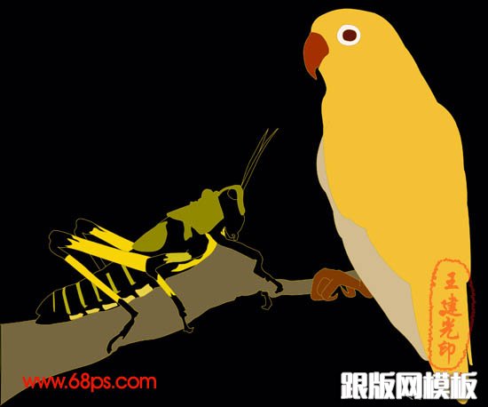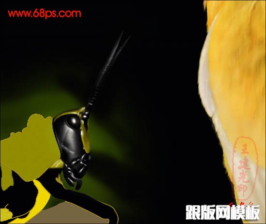 引言:本人鼠绘一贯以人物为主,本次尝试鼠绘昆虫、飞禽类,觉得在处理昆虫和鸟类在细节上比处理人物需表现的更为精致,才能突出其特征,昆虫类一般来说比较矮小,但细节较多,在绘制的时候必须考虑光、色、影的综合处理,不宜过于急躁。