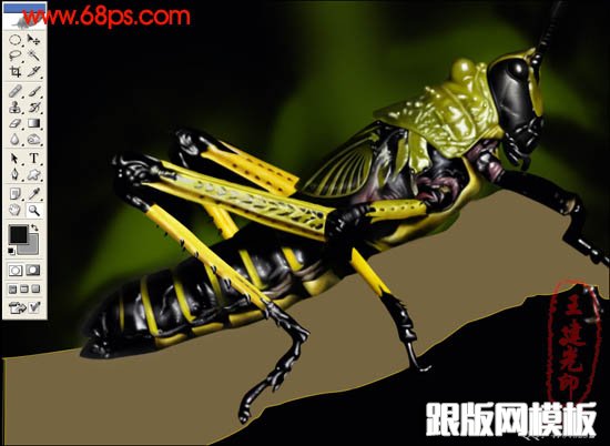 在蝗虫的绘制过程中细节较多,虽然使用到的工具较简单,主要在于掌握好明暗、色彩过度、和形体的处理。