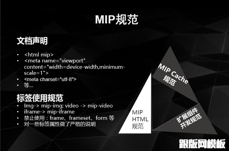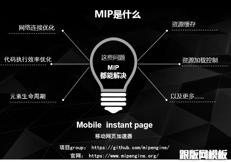 MIP (Mobile Instant Pages - 移动网页加速器), 是一套应用于移动网页的开放性技术标准。通过提供MIP-HTML规范、MIP-JS运行环境以及MIP-Cache页面缓存系统,实现移动网页加速。