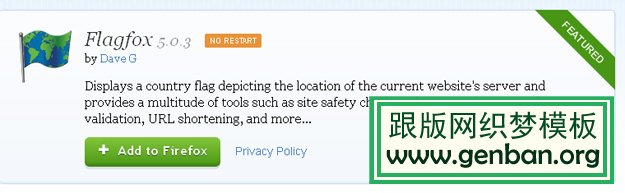 Flagfox 是一款能用小旗标明服务器物理地址的插件。拥有这个插件之后,你会更清楚自己的浏览器连接到了什么地方,并且你也可以借此明确服务器所在的地区和语言,查 查服务器所在地的法律法规是否有特殊限制等等。当然,你还可以通过外部操作了解更多的信息,也可以自己添加自定义的操作,并且设置快速访问或者设定键盘快 捷键。