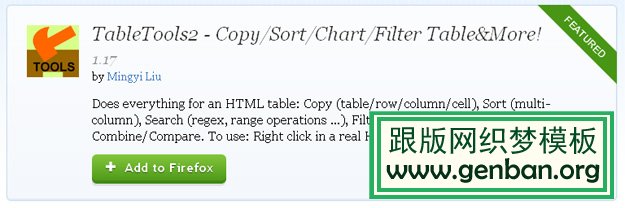 这是一款针对网页表格而设计的工具,你可以通过它对HTML表格进行复杂的操作,包括复制表/行/列/单元格,可以进行排序,基于正则表达式进行搜索,过滤 筛选,生成图表,统计数据,合并,以及比较。操作也非常简单,选中你需要操作的表格,右键菜单,点击“Table Tool 2”选项即可。