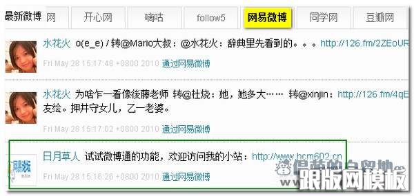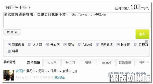 你是否也像跟版模板网一样拥有多个微薄和SNS账号,是否在为无法及时更新所有的微博和SNS而烦恼?今天,跟版模板网就向你推荐一个能够同步更新多个微薄和SNS账户的在线工具——微博通。