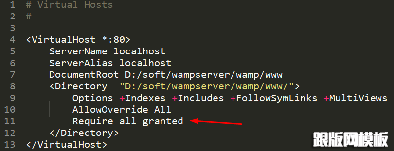 找到下图中红色方框中的onlineoffline tag - don’t remove,将原来的Require local替换为Require all granted;