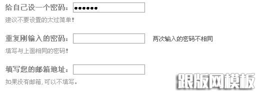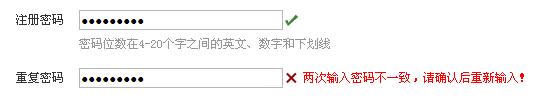 重复密码的时候我写错了,于是我得到提示说“两次输入密码不一致,请确认后重新输入”,于是我再一次的填写正确的重复密码,可是这个提示却依然还在那里“嚣张”的看着我。我要怎么做你才能告诉我填写正确呢?!