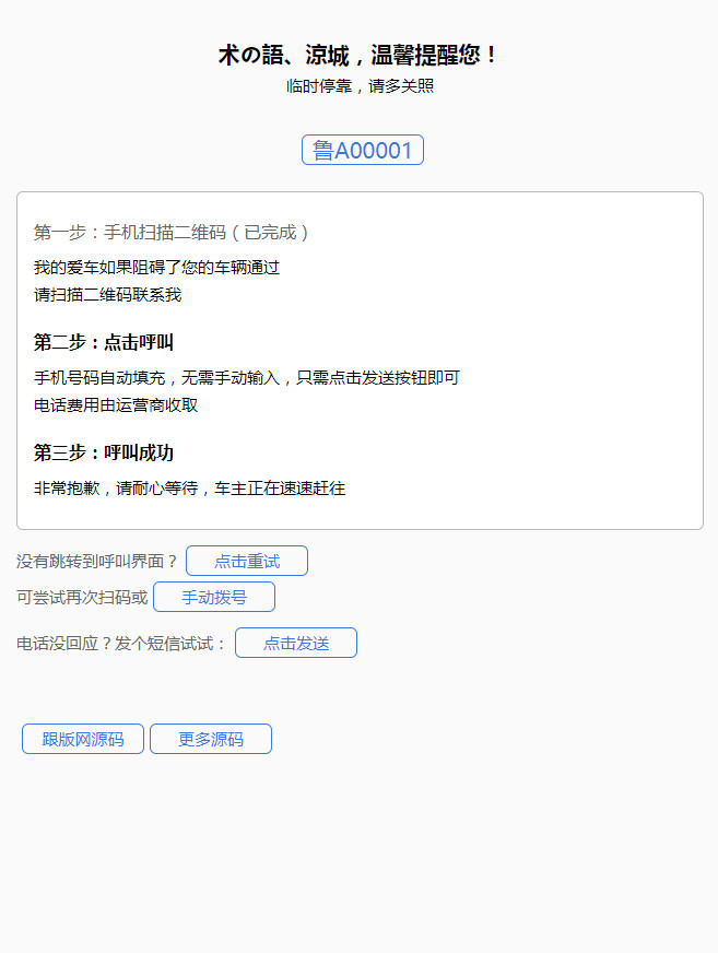 临时停车自动拨号发短信网页源码,里面有两套分别为自动拨号和自动发短信的,有能力的朋友可以优化下页面。