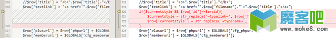 四、在519行的下方插入: if($currentstyle && $row['id']==$arcid){ $currentstyle = str_replace('~typelink~', $row['filename'], $currentstyle); $row['currentstyle'] = str_replace('~typename~', $row['title'], $currentstyle); }