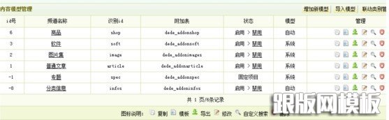 这里的价格的调用,dedecms默认是没有这个标签的,那我们如果实现这个价格的调用呢? 在这里我们就需要使用到dedecms模型里的自定义字段了,下面我们以dedecms5.6为例介绍一下dedecms字段的添加和调用方法。(5.3版本后的所以版本的自定义字段的添加和调用相同) 首先我们打开网站后台,点击左侧的“核心”,找到模型管理,这是就可以看到“内容模型管理”的选项卡了。如图: