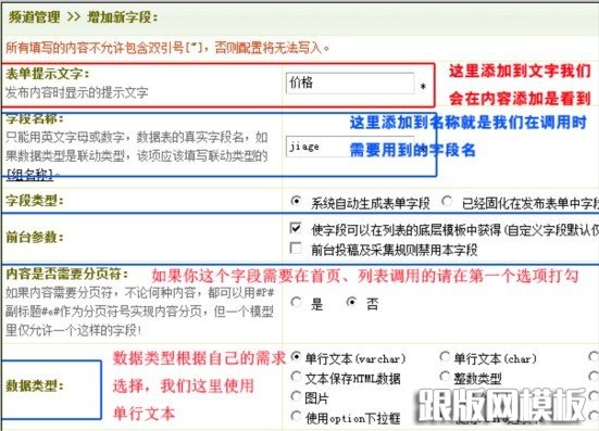 点击“添加新字段”按钮进入,这时看到的就是添加字段的界面了。 我们以上面讲到的价格字段为例进行一个实例操作的讲解,如下图: