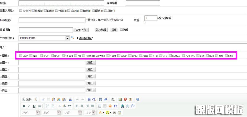 比如您的自定义字段建立的是:sizes,那么首页/列表页调用标签如下: