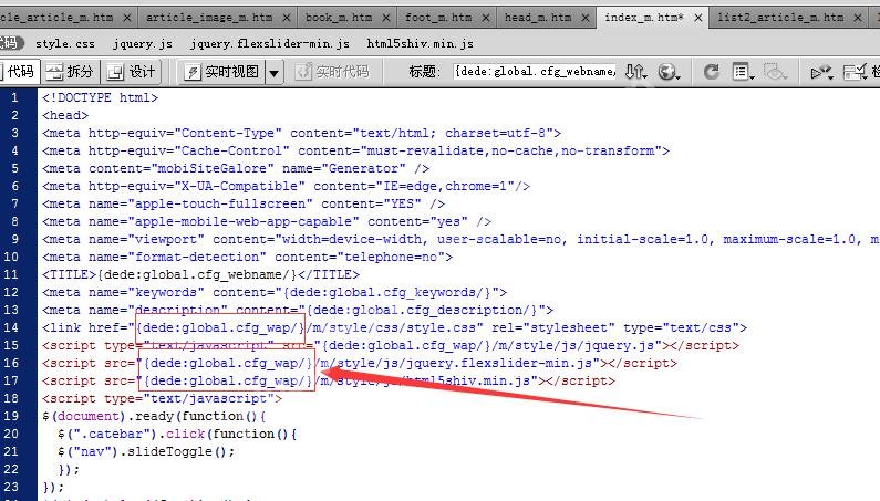 4:手机模板修改CSS、JS等调用路径,给添加绝对地址,如下图所示。