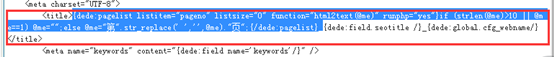 <title>{wmd:pagelist listitem=”pageno” listsize=”0″ function=”html2text(@me)” runphp=”yes”}if (strlen(@me)>10 || @me==1) @me=””;else @me=”第”.str_replace(‘ ‘,”,@me).”页”;{/wmd:pagelist}_{wmd:field.seotitle /}_{wmd:global.cfg_webname/}</title>