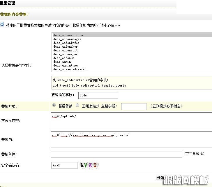 操作方法:织梦后台——核心——批量维护——数据库内容替换: