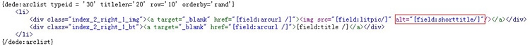 在织梦发布文章的时候,我们经常会省略填写一些地方,例如简略标题。在织梦默认的模版里面,这个简略标题根本就没有出现过,所以很多人也认为他是没 有作用的一个标题。就因为他没有固定的地方使用,但毕竟也是一个标签,我们就把他利用与说明图片,我们只需要把每一篇文章的缩略图想要加载alt信息里面 的文字填写在简略标题上,然后在模版上为调用出来的图片的ALT属性上加上这个简略标题的织梦标签即可。如图: