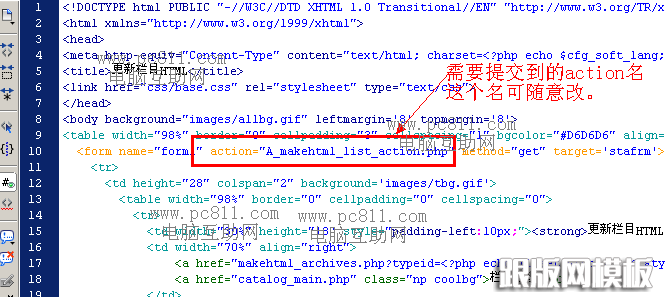 第5步:使用dw软件或一些专业软件打开A_makehtml_list.htm文件,整个文件搜索“makehtml_list_action.php”并替换成“A_makehtml_list_action.php”,然后保存。