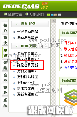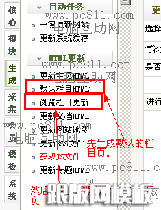 第14步:以下都是演示功能效果,正常登录dede后面,单击生成,单击更新更新栏目HTML,并开始生成所有栏目HTML,然后再单击“浏览栏目更新”,并开始生成所有栏目HTML。