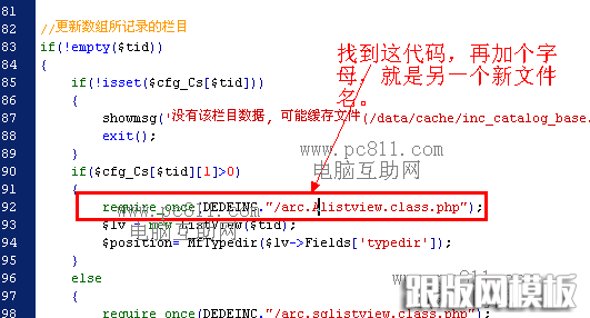 第7步:打开刚刚重命名为“A_makehtml_list_action.php”的文件,大概是92行把/arc.listview.class.php改成/arc.Alistview.class.php。