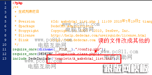 第3步:打开dede目录中后的A_makehtml_list.php文件,把最后一行改成include DedeInclude('templets/A_makehtml_list.htm');并保存。