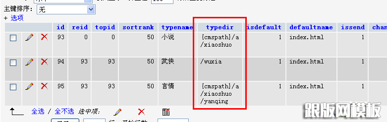这里面的$id就是要删除的栏目id,然后查询之。把字段typedir查询出来,这个字段对应的内容如下图所示: