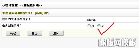 点击“删除”后,就进入到了下面的对话界面,这时候无论你选中“是”还是“否”,织梦默认下都不能删除这个栏目生成的文件夹和对应的html文件。