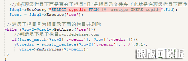 同样的道理在这个顶级栏目建立的子栏目不一定只在这个目录里面,如果只在这个目录里面,只写一个删除就行了,所以,还要判断一下有没有子栏目也生成在了根目录里面,若有,则跟第一类的处理方式一样,代码几乎一样,这里不用多解释了。
