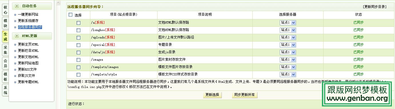 (1)打开站点管理后台—生成—远程服务器同步
