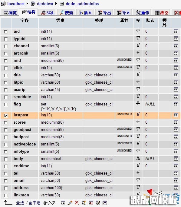 | typeid | 栏目ID | int(11) NOT NULL DEFAULT '0' , | ||