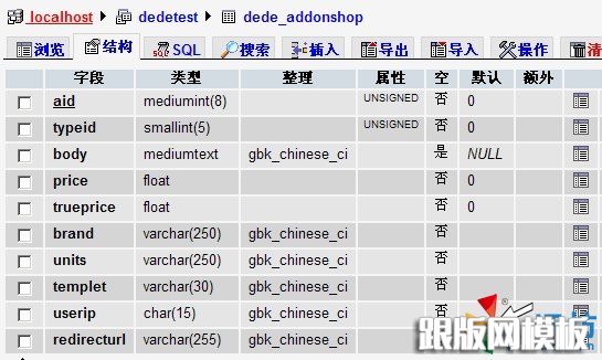 | templet | 自定义模板 | varchar(30) NOT NULL , | ||