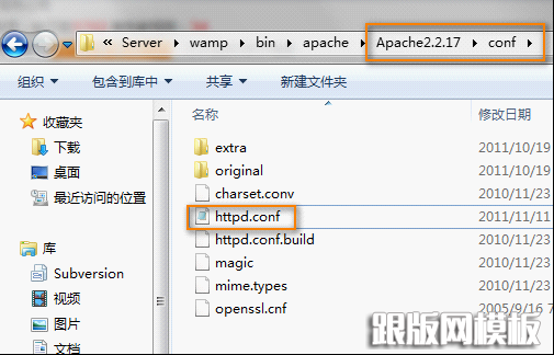 首先我们找到apache的配置文件httpd.conf,通常情况下,该配置文件在apache安装目录下的conf文件夹中(如图4)。