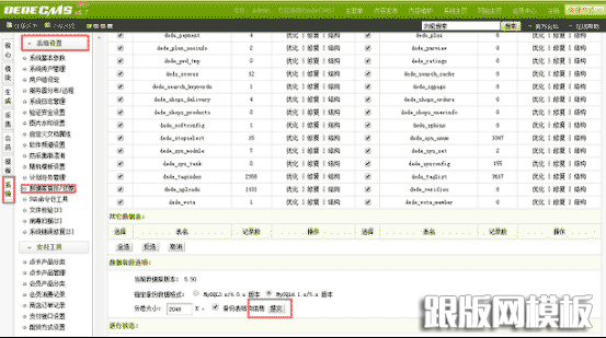 系统—系统设置—数据库备份/还原 这里出现数据库表单,
